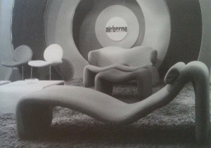 Inspiré par un numéro du magazine américain The American Home, sur la maison du future, le réalisateur sélectionne les sièges de la série Djinn crée par Olivier Mourgue en 1964-65, pour l’éditeur Airborne International. La série tire son nom des génies de la tradition musulmane appelés Djinn, qui ont la possibilité de changer de forme. En effet, les sièges ont un caractère insaisissable et futuriste. De plus, les assises très basses dessinent une vague, et correspondent au style de vie informelle très en vogue à l’époque.